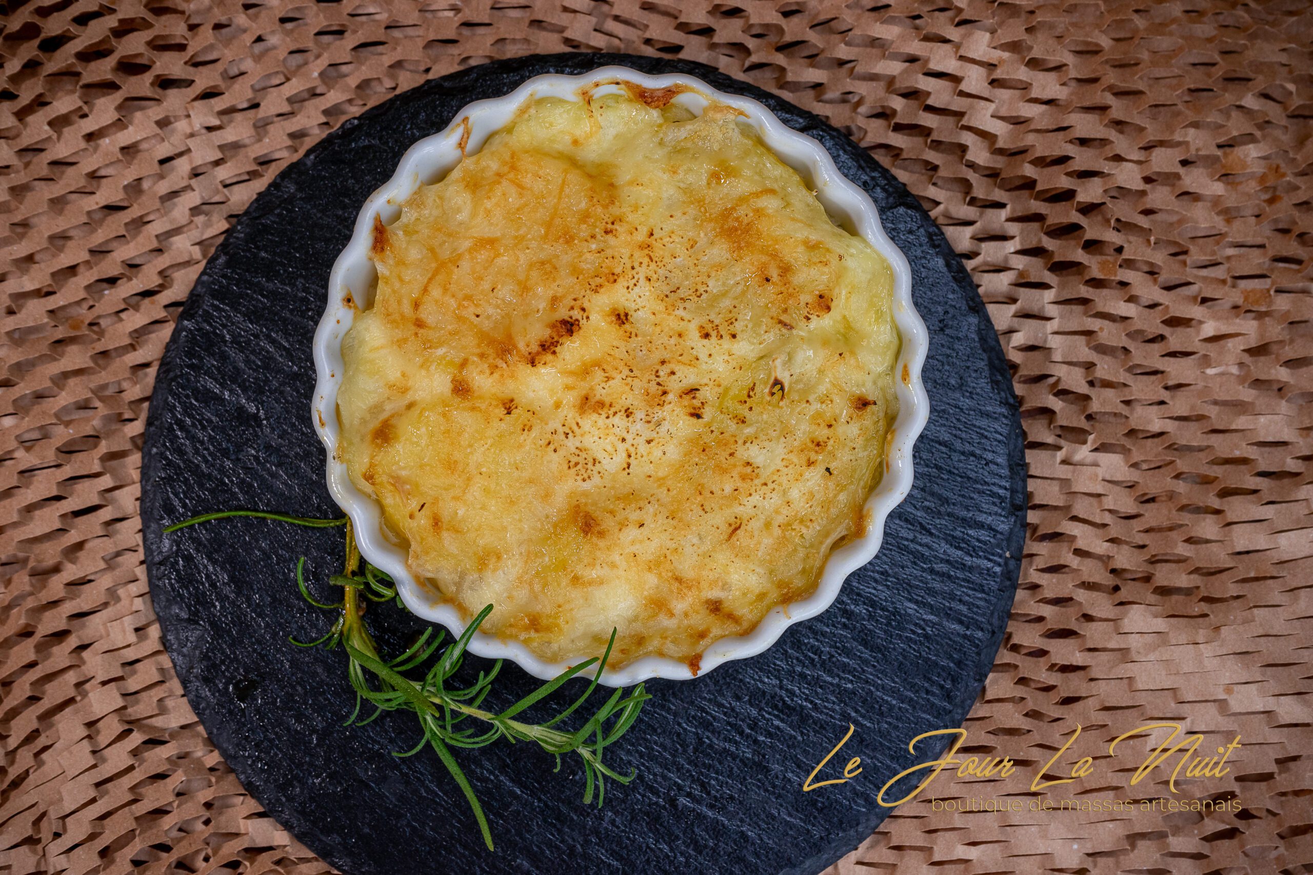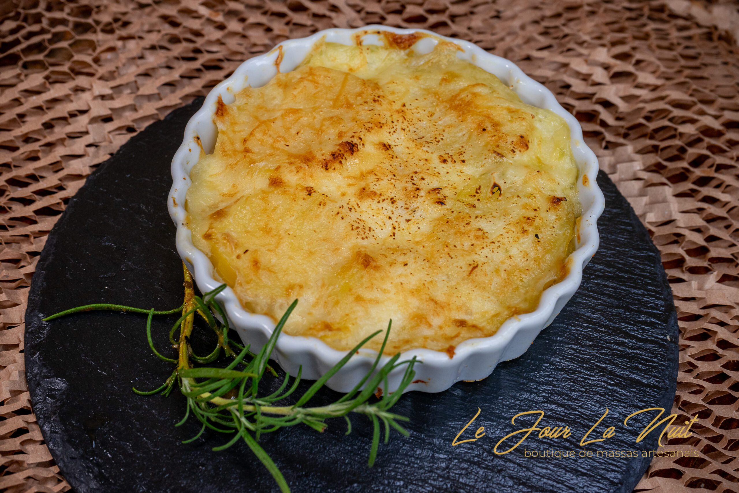Finas camadas de batata assadas no creme fresco com um toque de alho, formando um gratinado dourado, macio e sofisticado. Um clássico francês, ideal como acompanhamento ou prato principal.