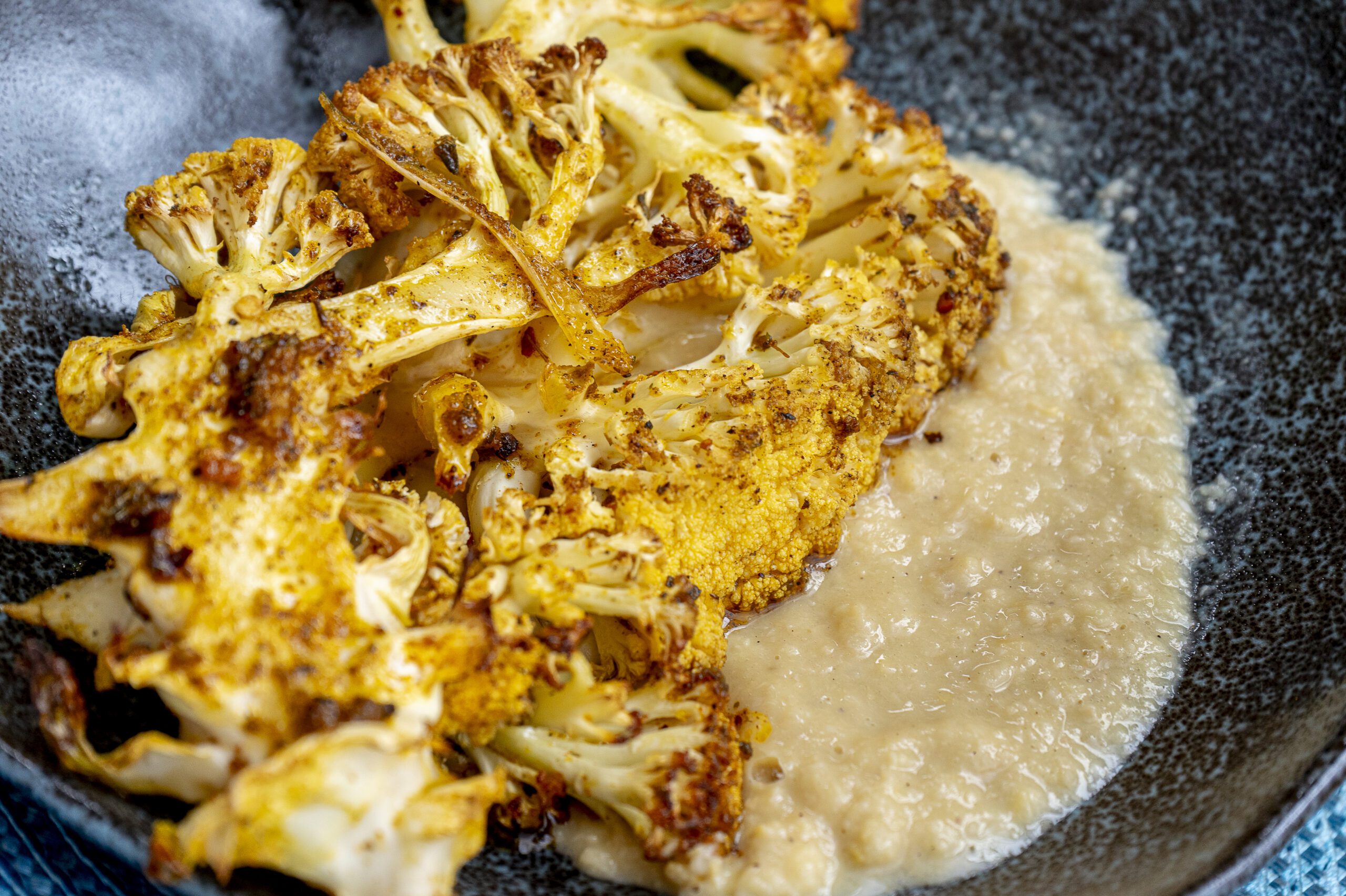 Couve-flor grelhada até ficar dourada e levemente crocante.