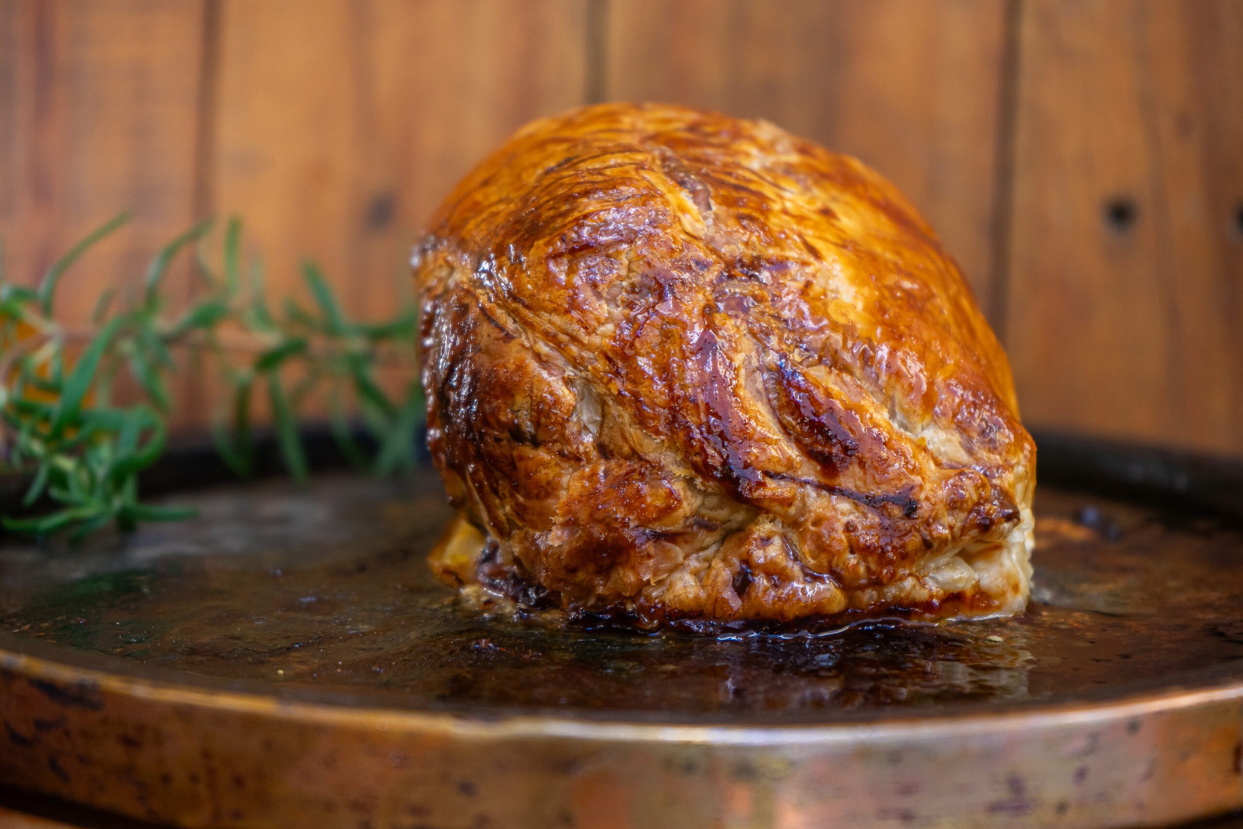 Carne de Angus com Presunto Parma envolto em massa folhada.